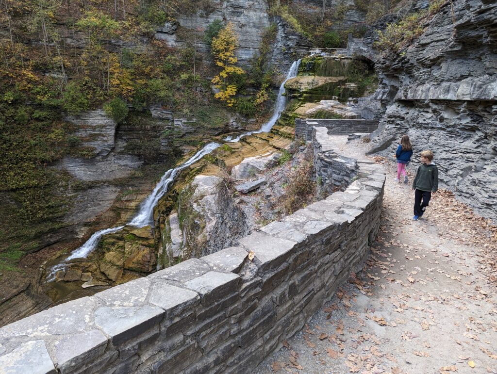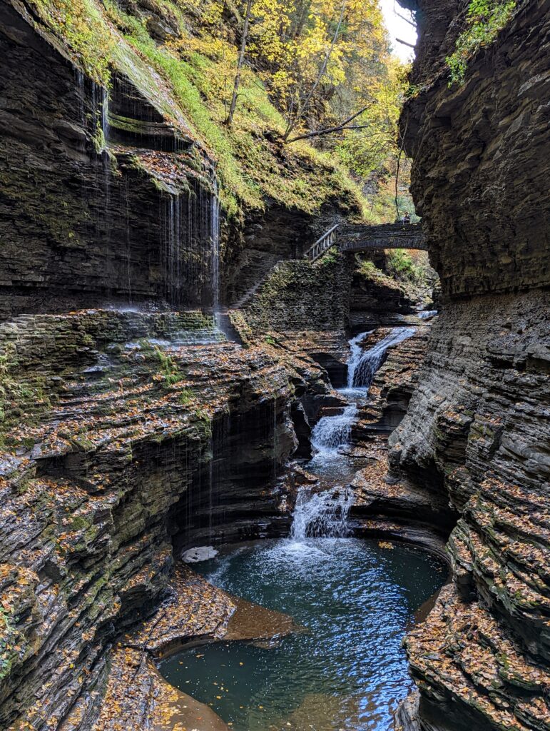 The best of the Finger Lakes waterfalls is no surprise: Rainbow Falls in Watkins Glen State Park. It looks like something out of a fairy tale with the stone bridge, multiple cascading pools, and water falling right by the trail, too. Expect lots of people around unless you’re there in a non-peak time. Depending on the crowds, you could get from the bottom of the gorge to Rainbow Falls in about an hour at a reasonable pace that allows you to really enjoy the beauty.