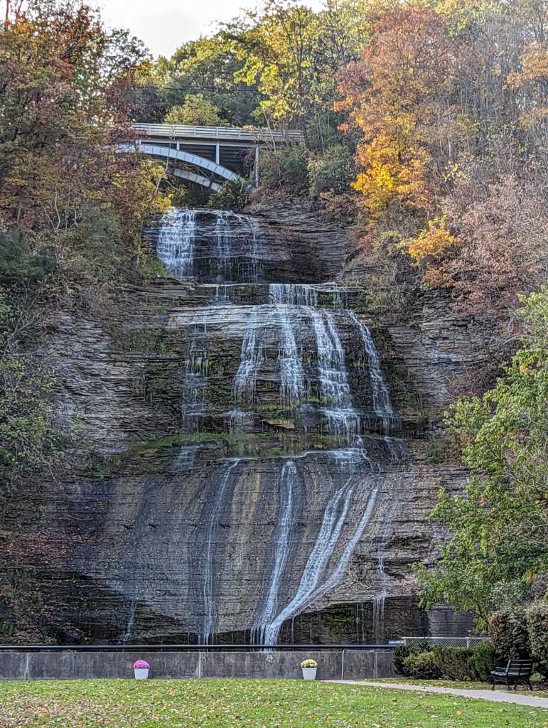 Ithaca Falls is in, you guessed it, Ithaca. It’s several minutes north of downtown and you’ll want to park in a lot on the corner of East Falls Street and Lake Street. There is a short trail leading to this view of the falls, which are much larger (150 feet) than you might think.